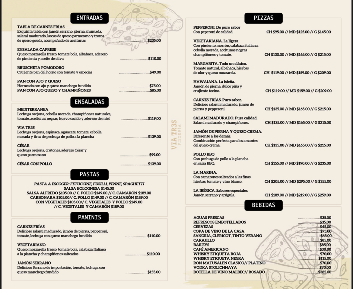 Welcome to Via 3 Pizzeria, a hidden gem located in the charming locale of Periferico, Merida. This Filipino pizzeria is not just a feast for the palate, but also a cozy escape from the heat, boasting both indoor and outdoor dining options. Whether you're a pizza lover or just looking for savory comfort food, Via 3 Pizzeria promises a delightful experience.